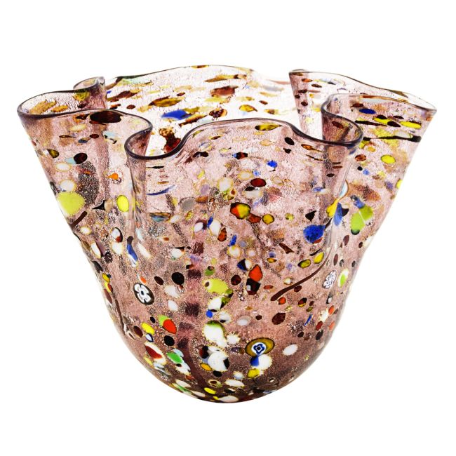 FAZZOLETTO ARLECCHINO Centrotavola ciotola autentico vetro soffiato di Murano con Murrine e foglia argento 925 Made Italy